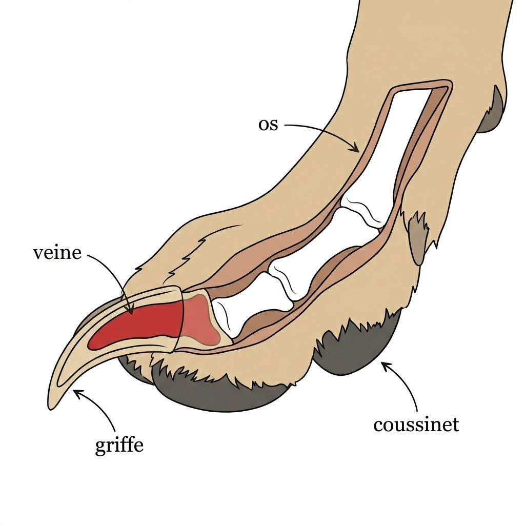 Des griffes mal taillées forcent votre chien à modifier ses appuis au sol pour compenser la gêne. Cette mauvaise posture se répercute directement sur son squelette, créant des tensions articulaires chroniques. À long terme, cela réduit sa mobilité au quotidien et peut engendrer de lourdes factures chez le vétérinaire.